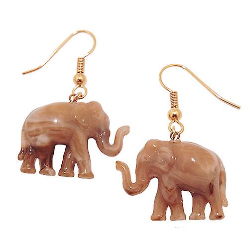 Ohrhaken Ohrhänger Ohrringe 39x23mm Elefant mini braun-marmoriert Kunststoff