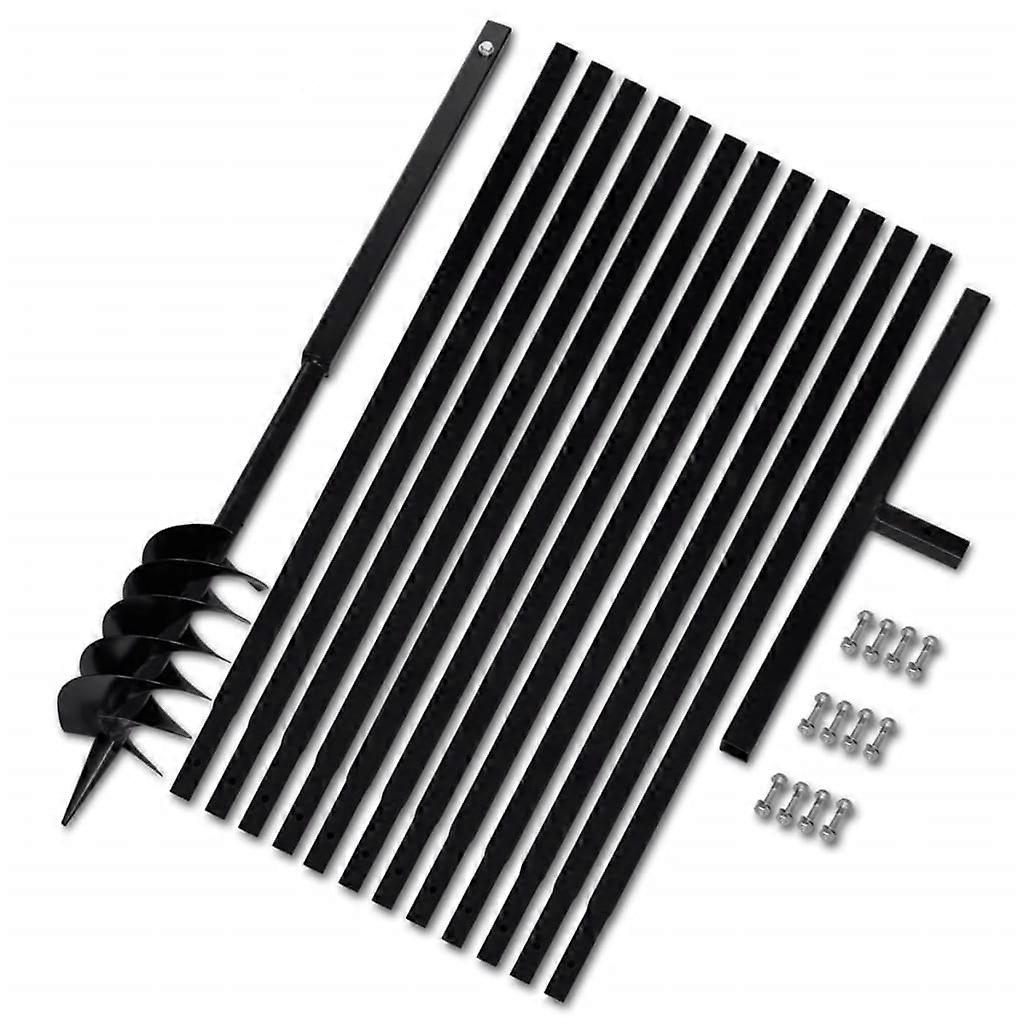 Material: EisenFarbe: SchwarzErdbohrer:Gesamtlänge: 1 mGrifflänge: 0,6 mBodenrohrendurchmesser: 25 mmQuadratrohrenmaße: 30 x 30 mmDurchmesser der Spirale: 120 mmAbstand zwischen Spiralen: 55 mmLänge der Spirale: 250 mmDoppel-SpiraleVerlängerungsrohr:Länge (pro Rohr): 1 mQuadratrohrenmaße: 30 x 30 mmLieferung umfasst 1x Erdbohrer, 1x Griff, 12x Verlängerungsrohr, und einige Schrauben.