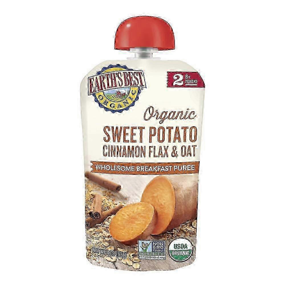 Earth's Best Organic Stage 2 Baby Food, Sweet Potato Cinnamon Flax & Oat Breakfast Puree, 4 Oz