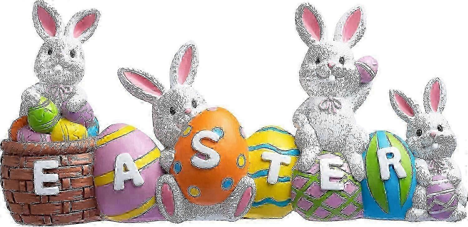Easter Bunny Eggs with The Word Easter Resin Centerpiece Decor Easter Resin Decoration 4 Rabbits Bunny & Egg Tabletop Easter Figuring for Easter Home