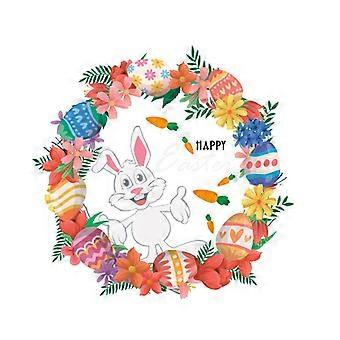 Easter Bunny Wreath Sticker PVC Wall Sticker Self Adhesive Window Decal for School Home Office Party Easter Holiday Decoration Accessory Supplies
