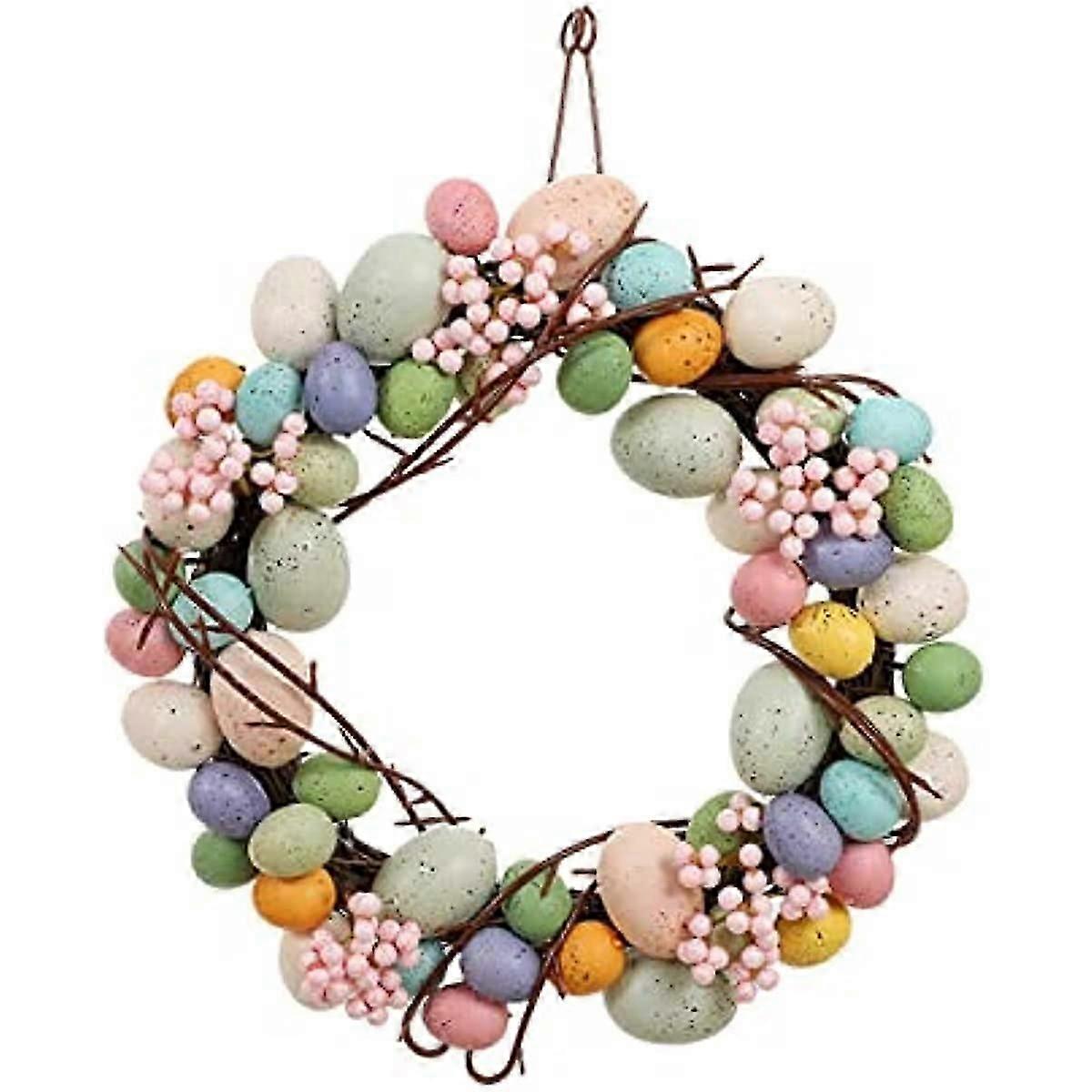 Easter Colorful Egg Wreath Wall Hanging Welcome Sign Rabbit Garland Pendants Bunny for Party Holiday Easter Day 35cm