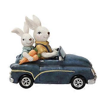 Easter Decoration Car Bunny Rabbit Statue Ornaments Vintage Figurine Resin Craft
