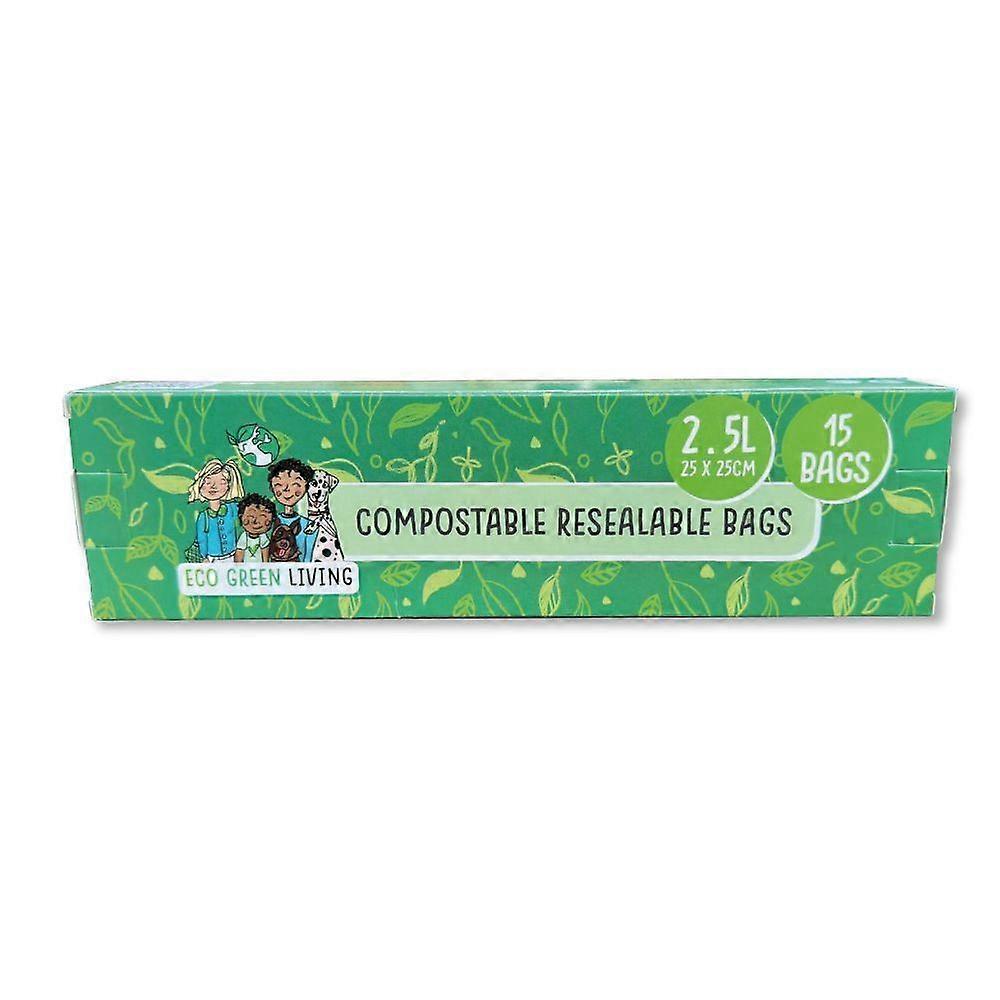 Eco Green Living Compostable Resealable Bags Large 2.5 Litre - 15 bags - 2 Pack