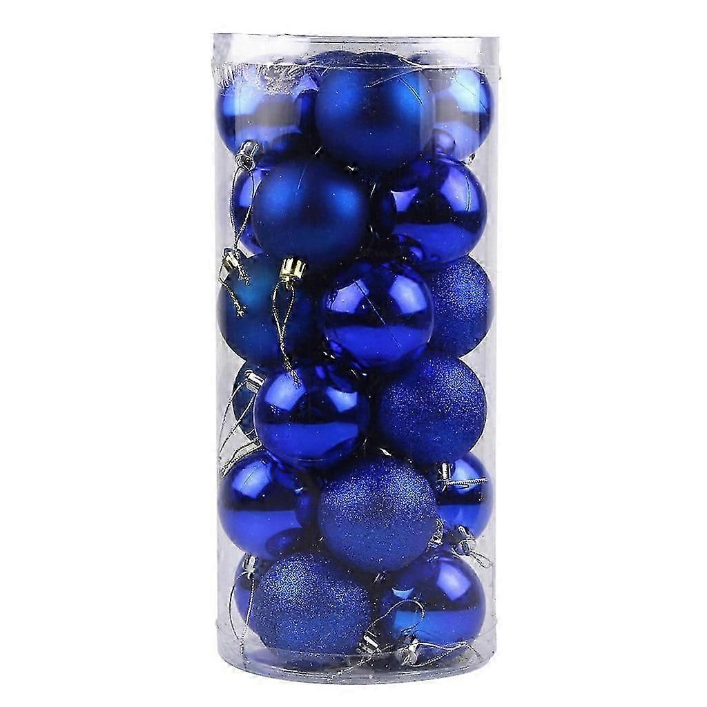 Eguiwyn 24Pcs Plastic Christmas Ornaments, Blue Baubles for Xmas Tree Decorations, Hanging Party Decor Compatible with Christmas