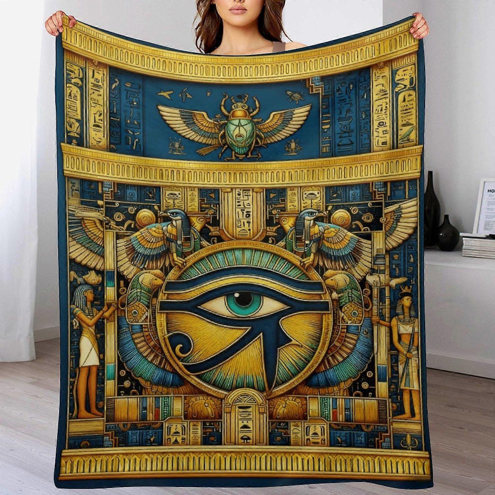 Egyptian Eye of Horus Print Flannel Blanket - Soft Warm Throw | Ancient Culture Decor for History Enthusiasts