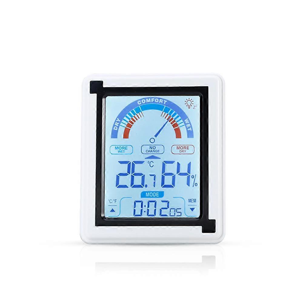 LCD Touch Thermometer mit Uhr Messgerät für Temperatur, Luftfeuchtigkeit umstellbar auf Fahrenheit Die Temperatur und die Luftfeuchtigkeit im Auge zu behalten ist sehr wichtig um beispielsweise Schimmel zu vermeiden. Dafür ist das elektrische Thermometer mit LCD Display perfekt! Mit seinem kontrastreichen und gut lesbaren Bildschirm ermöglicht er einfaches Ablesen, sodass Sie sofort wissen wieviel Uhr, wieviel Grad oder Luftfeuchtigkeit es in dem Raum ist. Das Gerät zeigt ebenfalls auf einer Skala an, in welchem Bereich sich die Messungen befinden sollten, um ein angenehmes Raumklima zu halten. Das zeigt Ihnen das Multifunktionsgerät an: - Die Temperatur - Die Luftfeuchtigkeit - Die Uhrzeit - Eine Skala zur Orientierung Produktmerkmale: - Hergestellt aus robustem Kunststoff - Kontrastreiches LCD-Display - Mit Standfuß Verzichten Sie nicht auf dieses multifunktionelle Gerät, das Ihnen dabei hilft, das perfekte Raumklima zu erschaffen!
