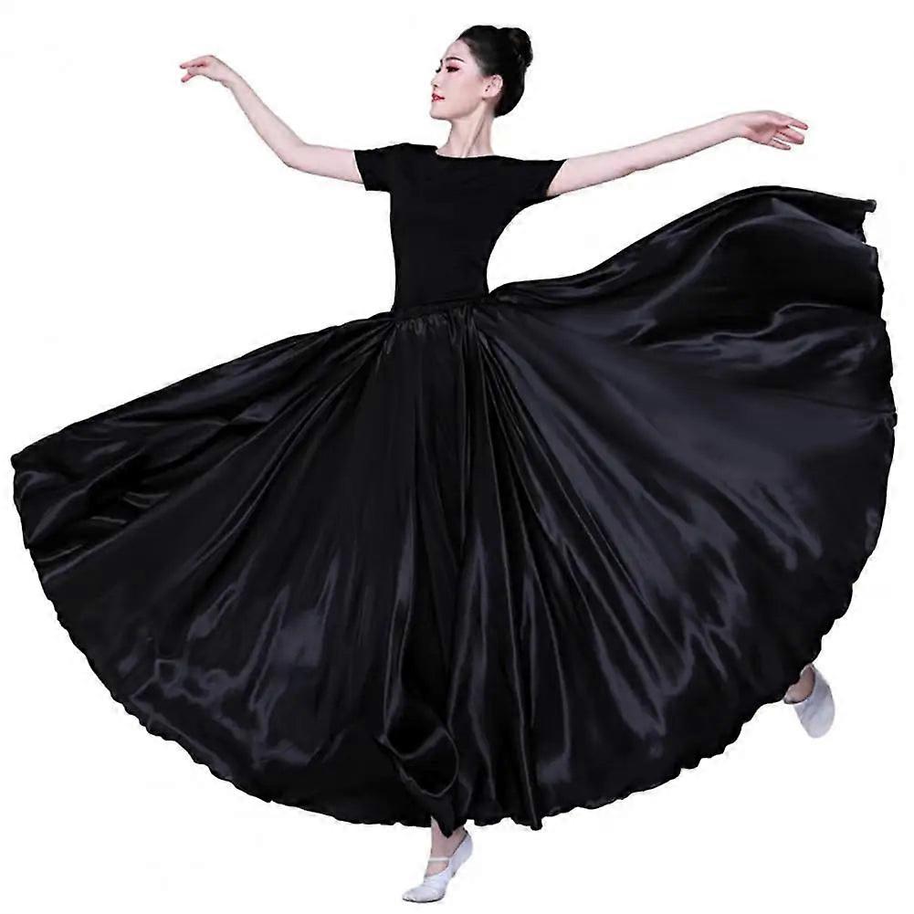 Elegant Satin Dance Skirt - Elastic Waist, Pleated Hem For Spanish & Belly