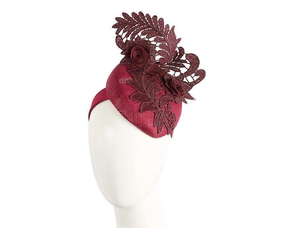 Elegant Wine-colored Pillbox Fascinator with Lace S325W