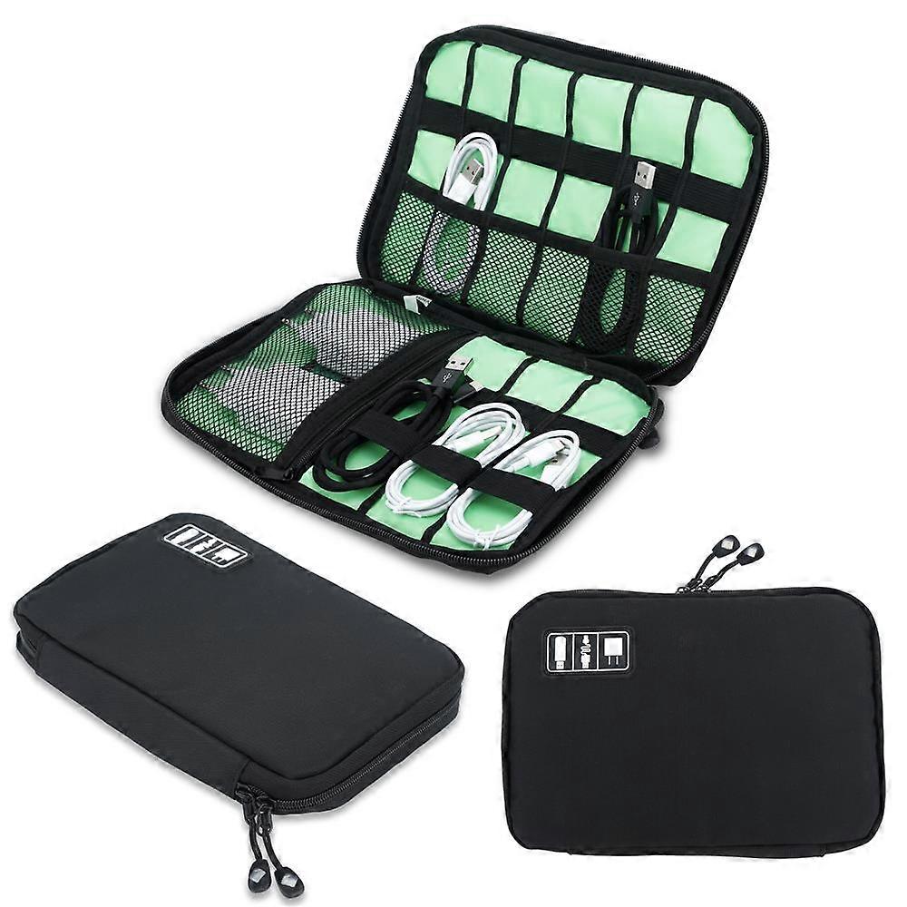 Elektronik Organizer in SCHWARZ – Multifunktionelle Nylon Tasche mit Netz Fach