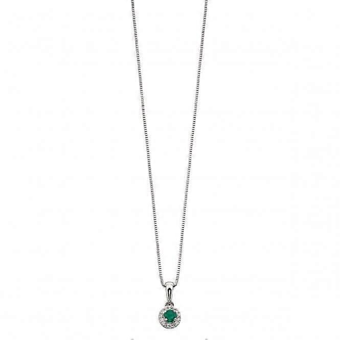 Elements White Gold Emerald Round Pendant Diamond Edge GP875GZ475GN063