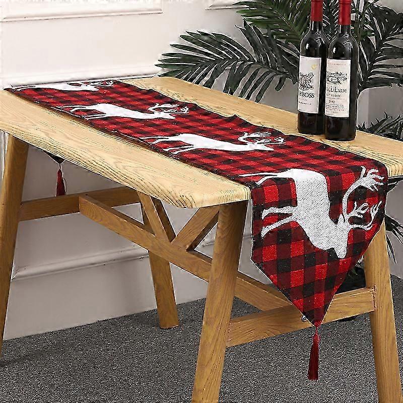 Embroidery deer electric tablecloth, holiday kitchen table decoration, for indoor and outdoor family party decoration 180X35CM