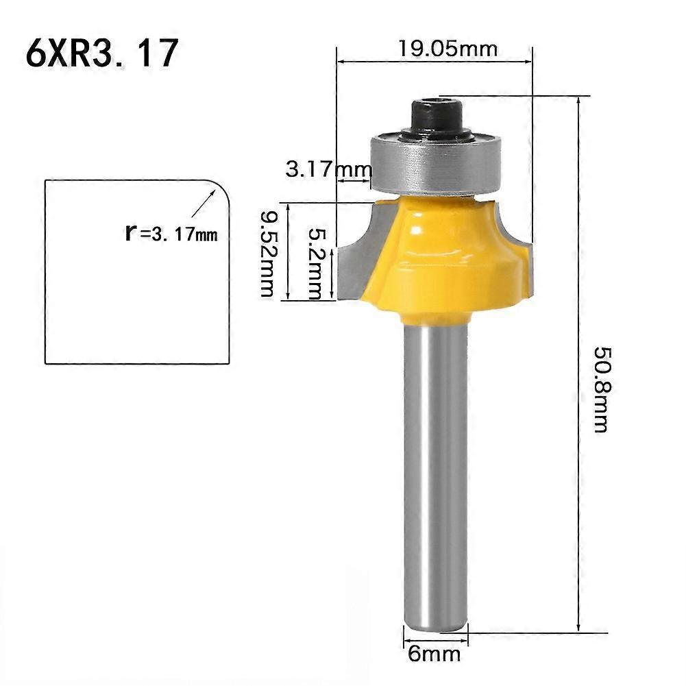 End mill 6mm round milling cutter with bearing woodworking milling cutter carbide R3.17mm, R4.76mm, R6.35mm, R7.96