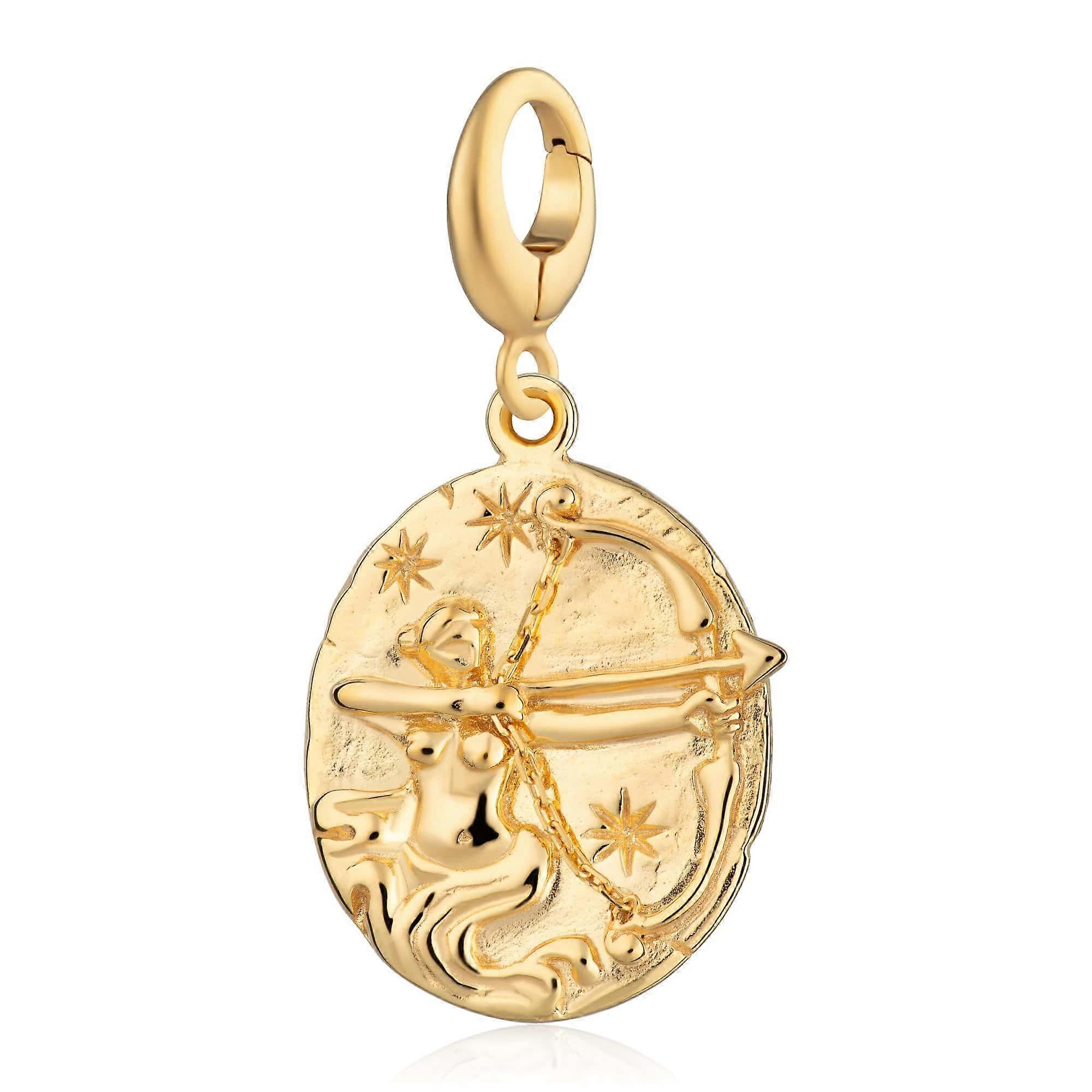 Engraved Gold Plated Sagittarius Zodiac Charm CGSAG The perfect gift for a Sagittarius Material - 18ct Gold Plated / Sterling Silver All Lily Charmed will arrive beautifully presented in either a Lily Charmed gift box.. If you require any additional packaging,