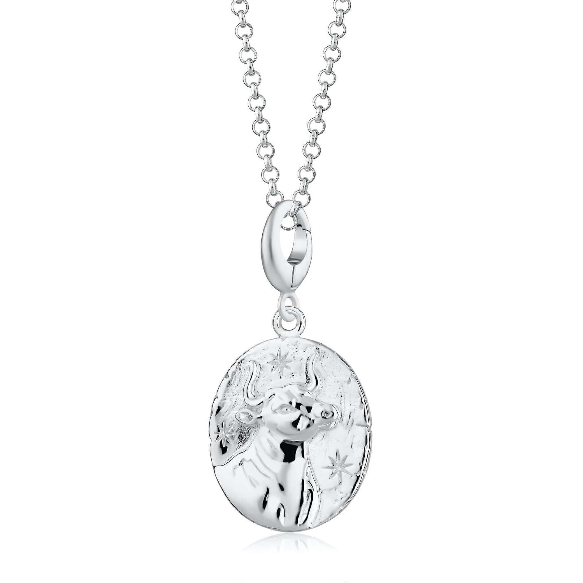 Engraved Silver Taurus Zodiac Necklace CNSTAU-1