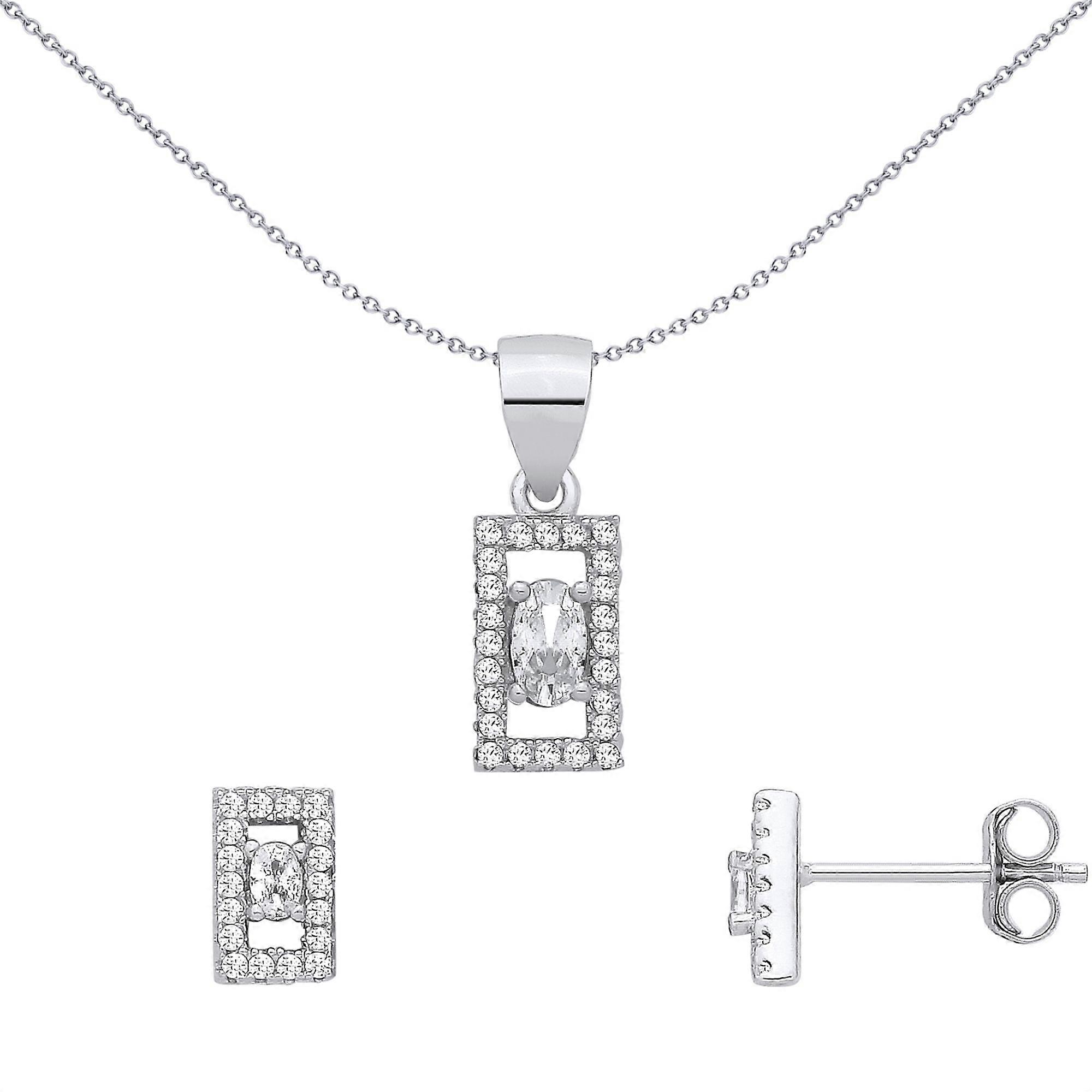 Jewelco London Sterling Silver CZ Rectangle Earrings & Pendant Set