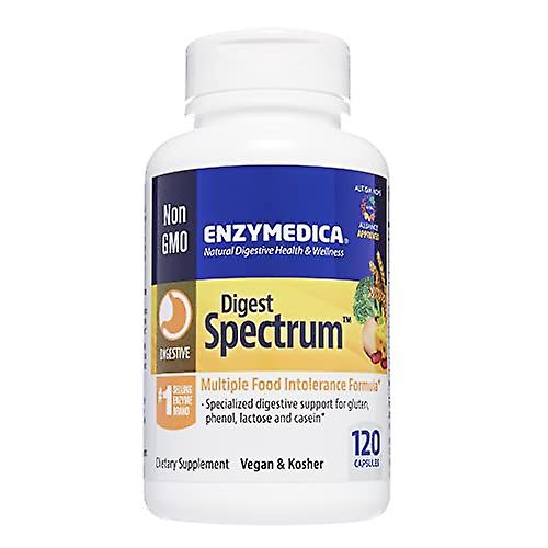 Details: An easy solution to food intolerances, Digest Spectrum is a powerful enzyme supplement designed to support digestion of gluten, dairy, and phenol. Your body relies on digestive enzymes to properly break down food - a lack of these enzymes can lead to food intolerance and indigestion. Our formula helps fill the gap. Taking 2 veggie capsules with each meal helps reduce occasional gas, bloating, stomach pressure, and irregularity.