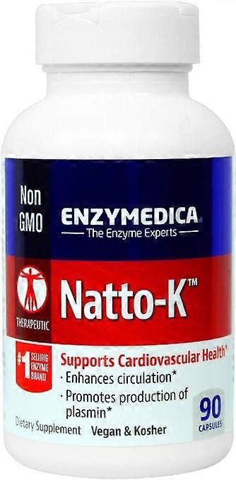 Description Fibrin is a protein found in the blood. Maintaining healthy levels of fibrin promotes healthy coagulation of blood for an optimally functioning cardiovascular system. Natto-K contains specialized blends of enzymes including Nattokinase with NSK-SD the only form of nattokinase that does not contain vitamin K2 to enhance the body s production of plasmin. Plasmin breaks down excess fibrin, which may improve circulation. Natto-K may help maintain already healthy levels of blood clotting factors within a healthy range. Recommended Use: 1 capsule three times daily on an empty stomach, one hour before or two hours after a meal. Consult physician prior to use if pregnant or nursing. Thera-blend is an exclusive process that combines multiple strains of enzymes that work in specific pH levels, resulting in superior performance in the body. NO FILLERS ADDED *Disclaimer: These statements have not been evaluated by the Food and Drug Administration. These products are not intended to diagnose, treat, cure, or prevent any disease.