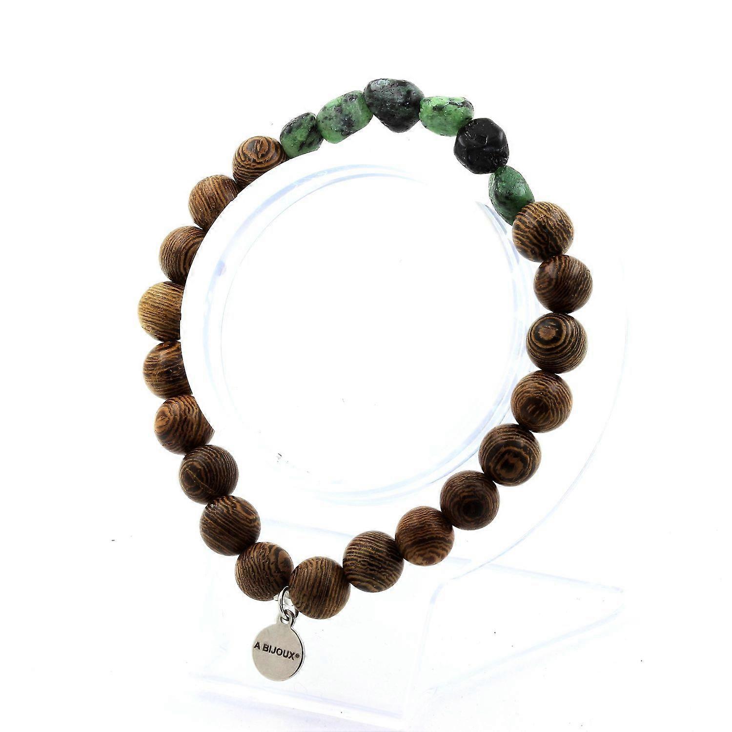 Epidote bracelet from Myanmar (Burma) + 8 mm wooden beads