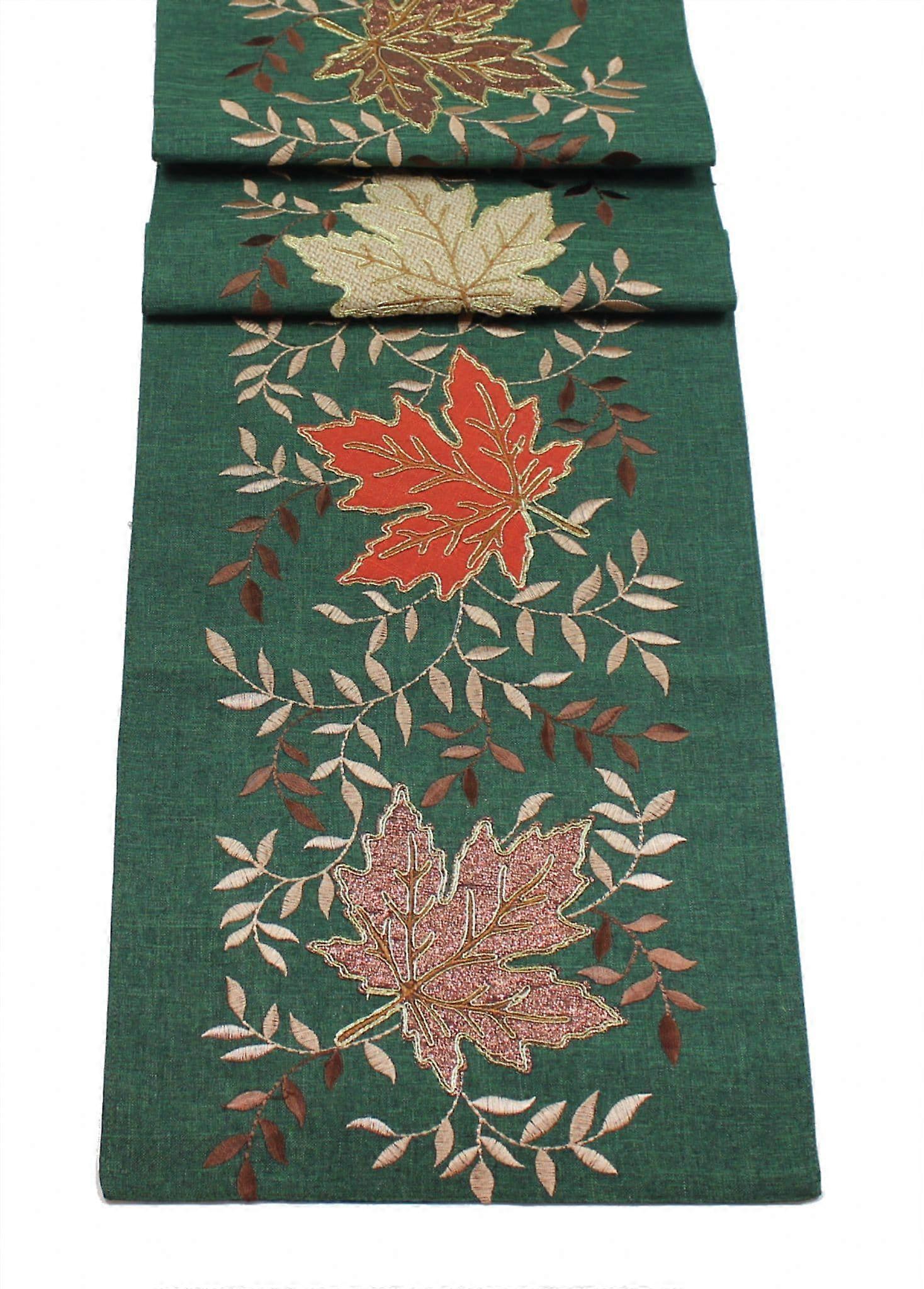 Equinox Embroidered Winter Leaves Table Runner - 14" x 75"