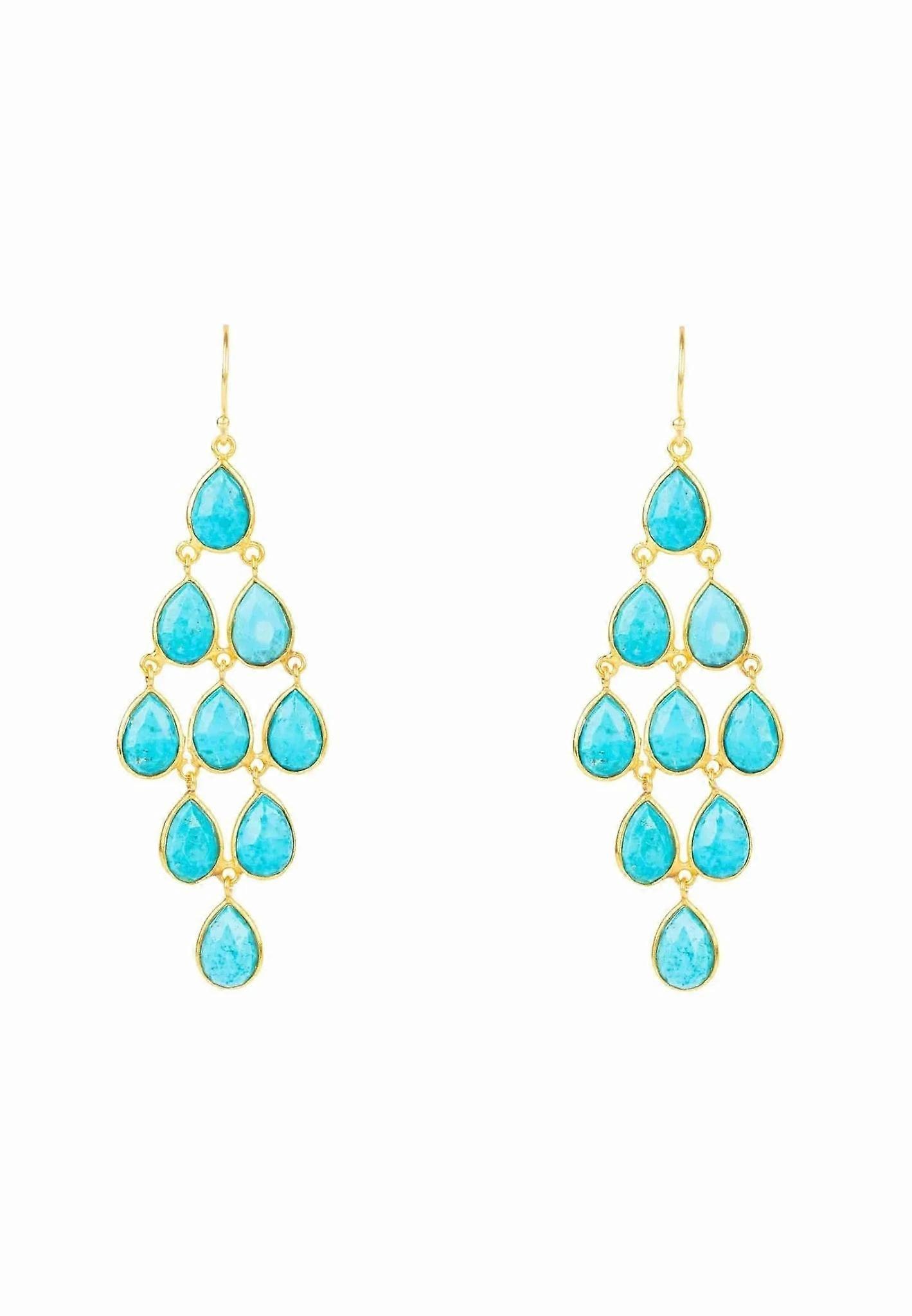 Erviola Gemstone Cascade Earrings Gold Turquoise for Women, 925 Sterling Silver