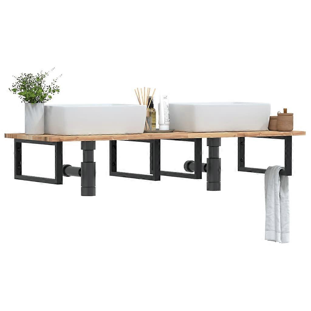Waschbeckenregal Wandmontage Stahl und Akazienholz