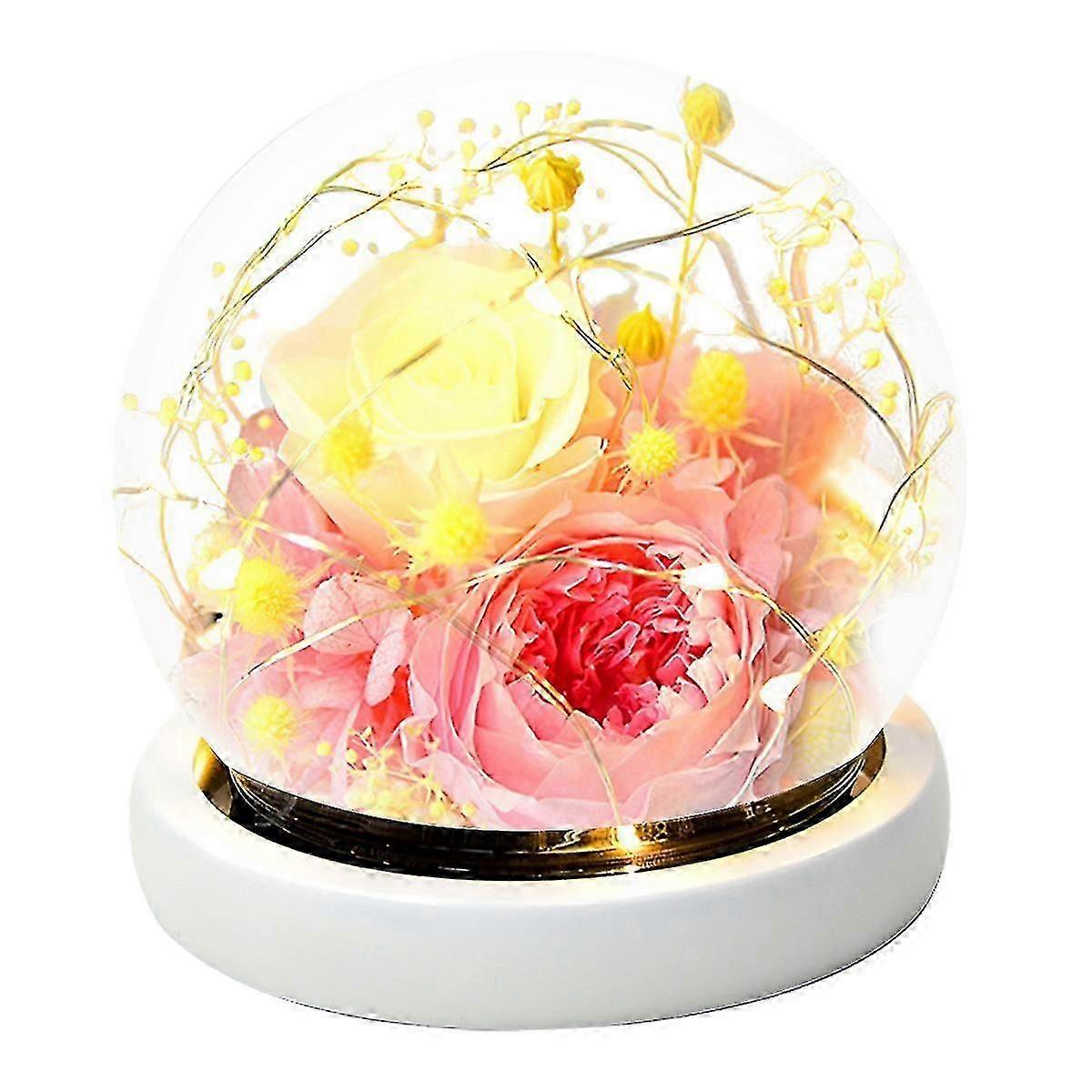 Eternal Flower Decoration Rose Plus Hydrangea Glass Cover With Lights Holiday Gifts Birthday Gifts For Family And Friends