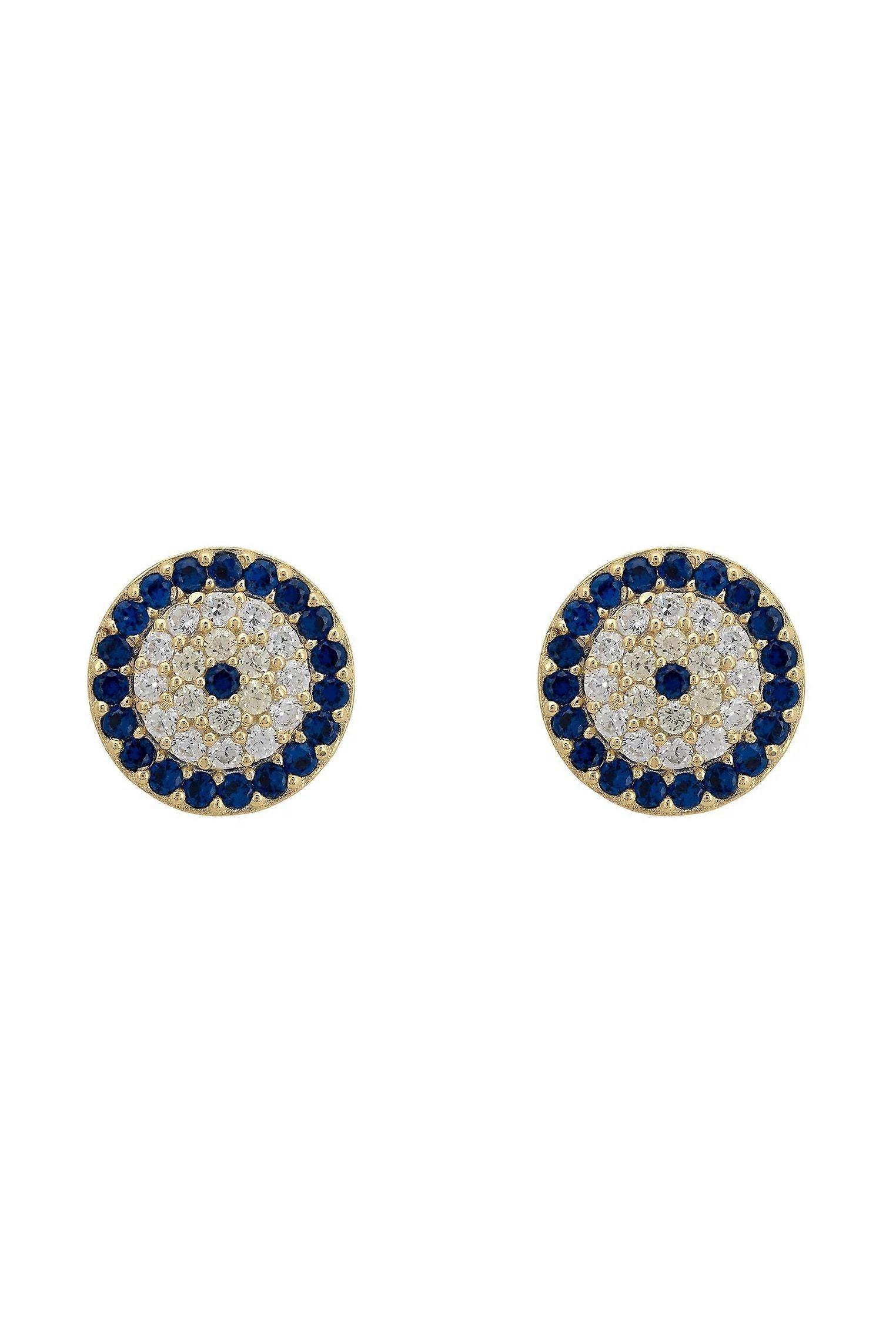 Evil Eye Stud Earrings by Latelita 925 Sterling Silver with 18ct Gold Plating and Blue Zircon Stones for Women