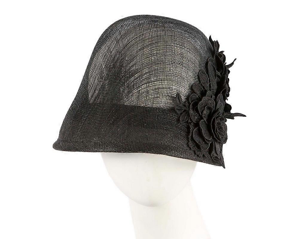 Exclusive black sinamay bucket hat by Cupids Millinery CU699