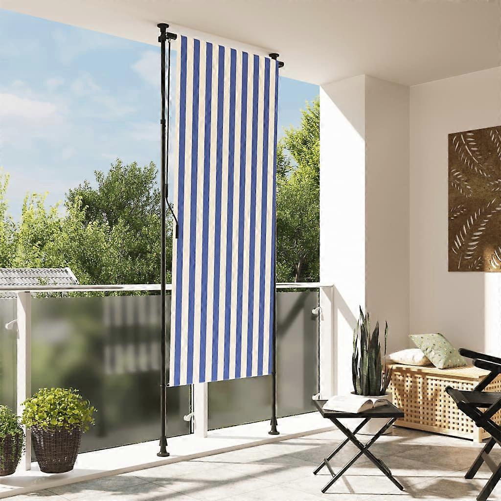 Außenrollo Blau und Weiß 100x270 cm Stoff und Stahl