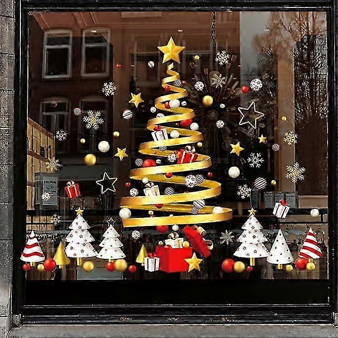 Extra Large Christmas Window Stickers, Christmas Gold Tree Window Stickers, 2 Sheets of Reusable Christmas Stickers for Christmas Decoration