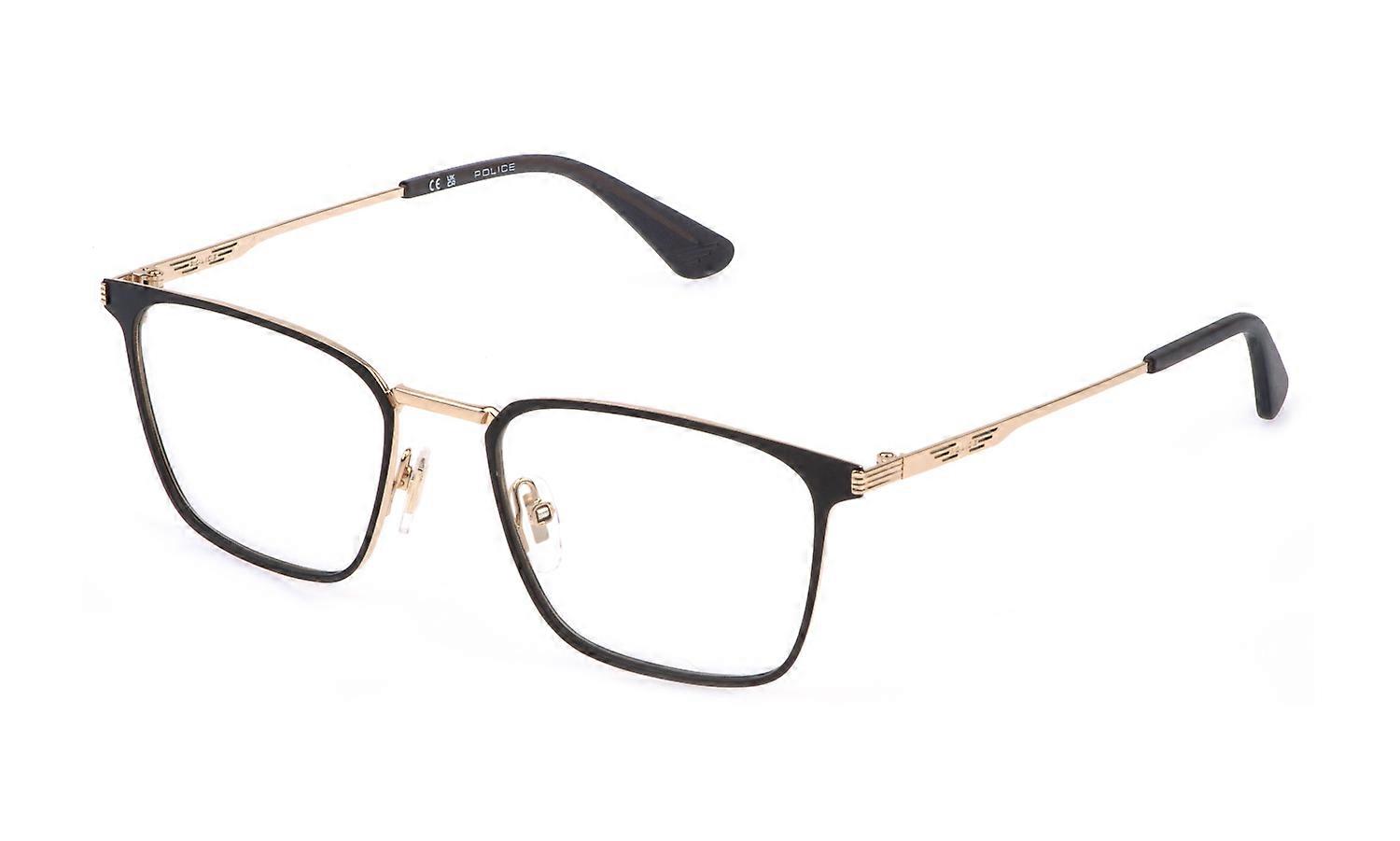 Eyewear Frames Police VPLQ70 0302 ORO ROSE' LUCIDO C/PARTI Black SEMILUCIDO 52/19/145 MAN
