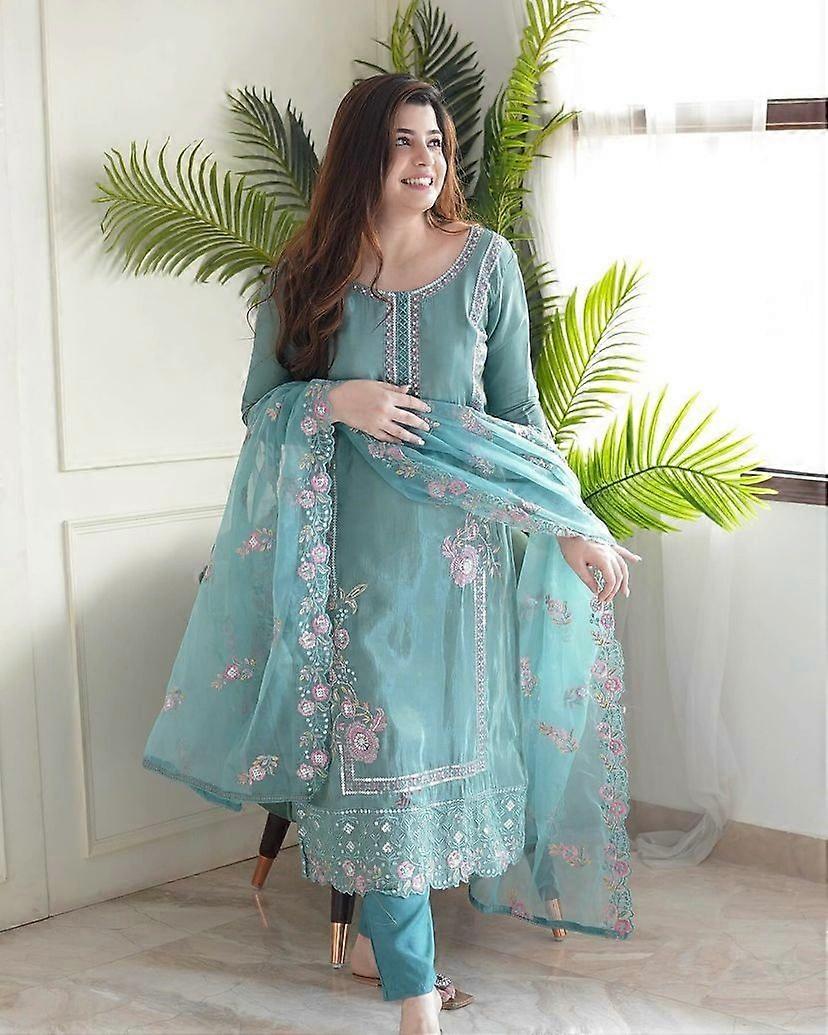 Fab Zone Womens Designer Party Wear Suit Set With Embroidery Thread & Sequins Work
