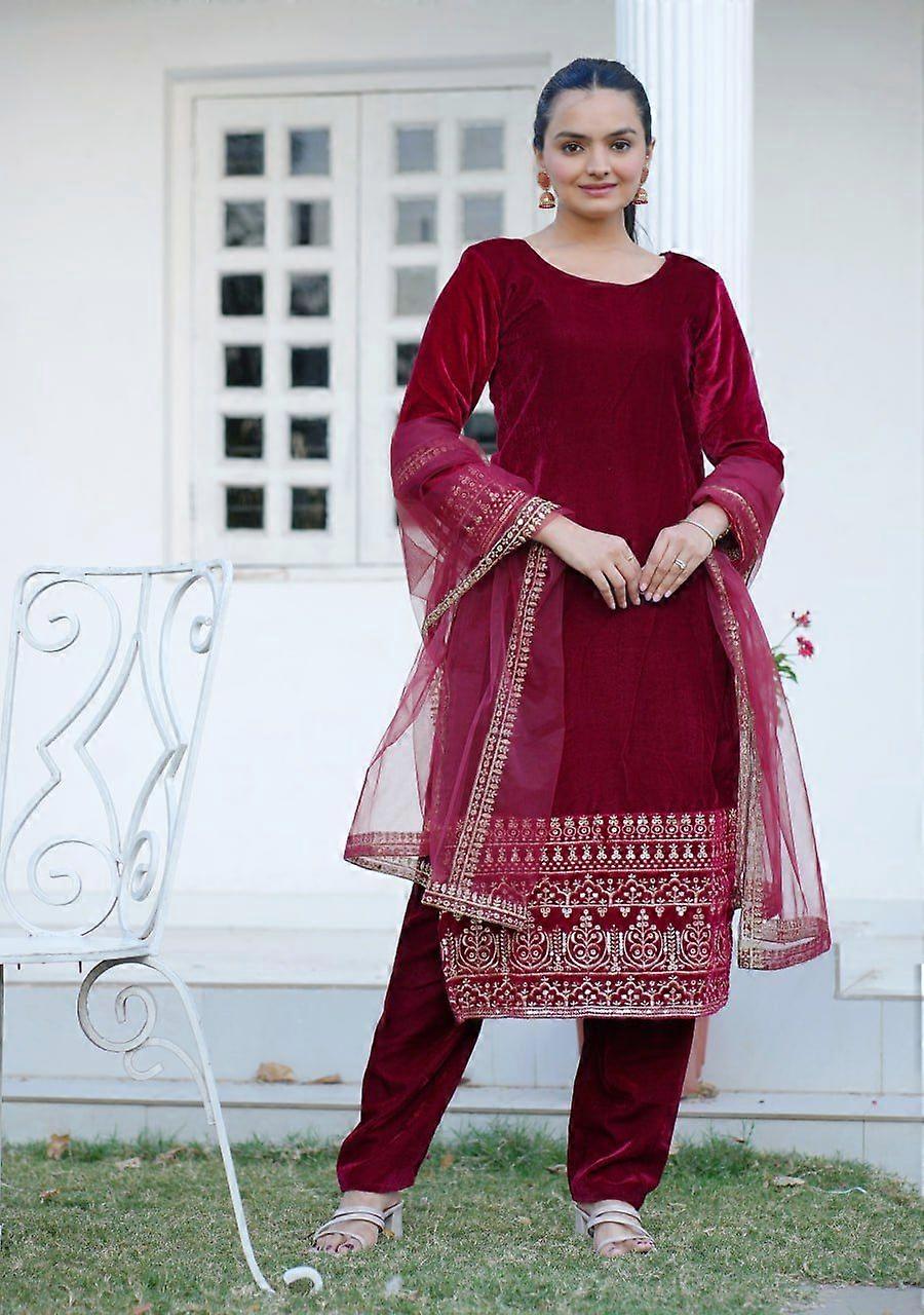 Fab Zone Women's Designer Velvet Suit With Sequin Embroidery