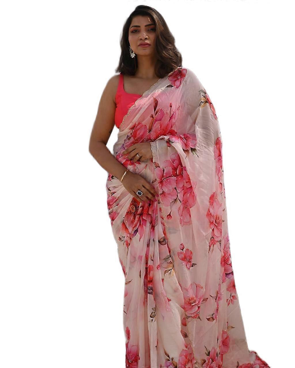 Fab Zone Women's Party Wear Beautiful Saree With Diamond Handwork
