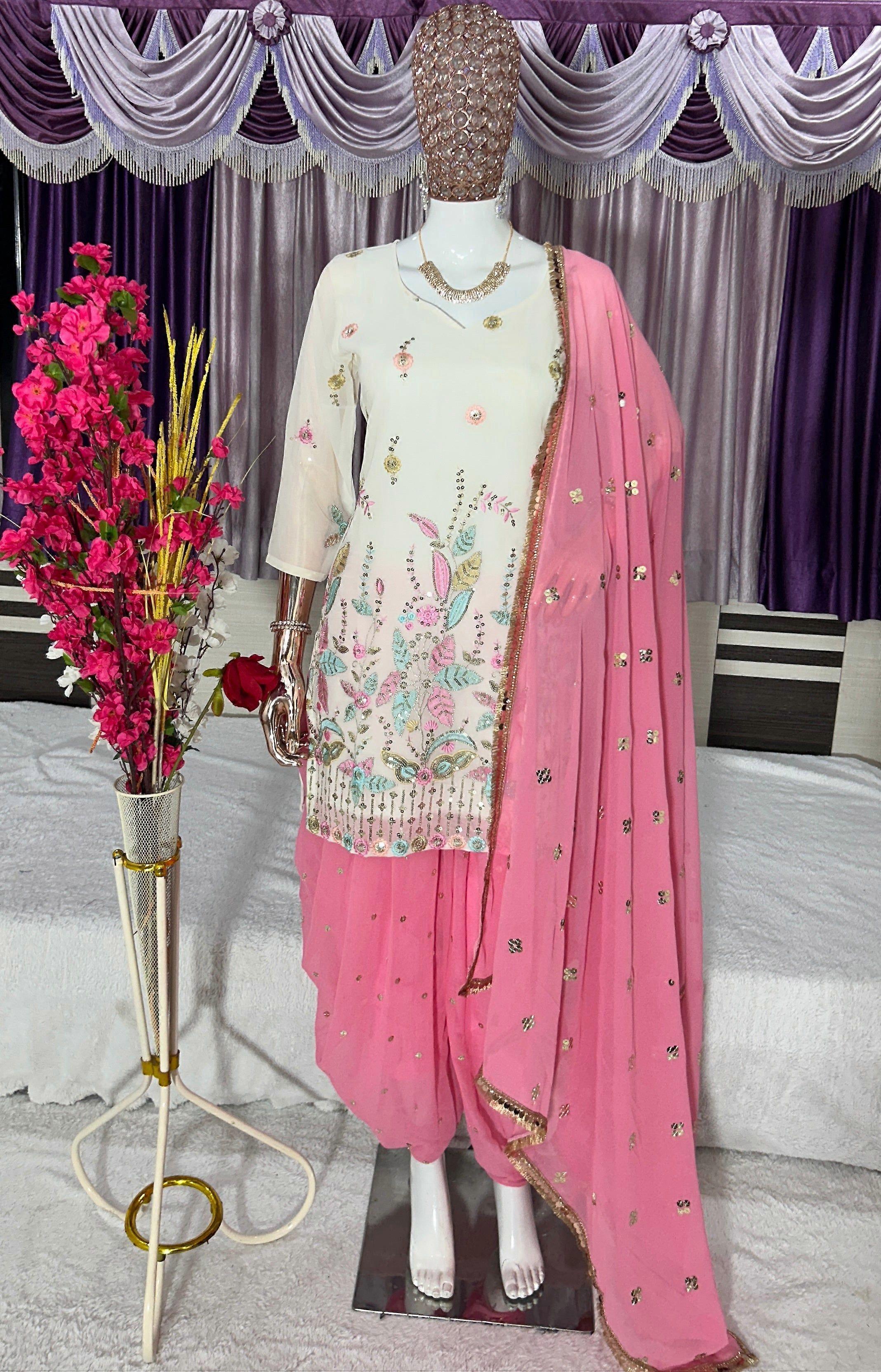 Fab Zone Womens Party Wear Faux Silk Kurti Dhoti Set with Embroidered Dupatta