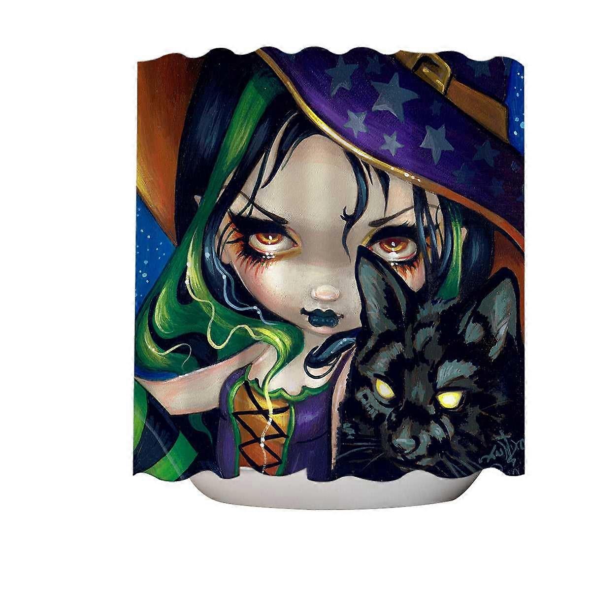 Faces of Faery #114 Halloween Witch Girl and Cat Shower Curtain
