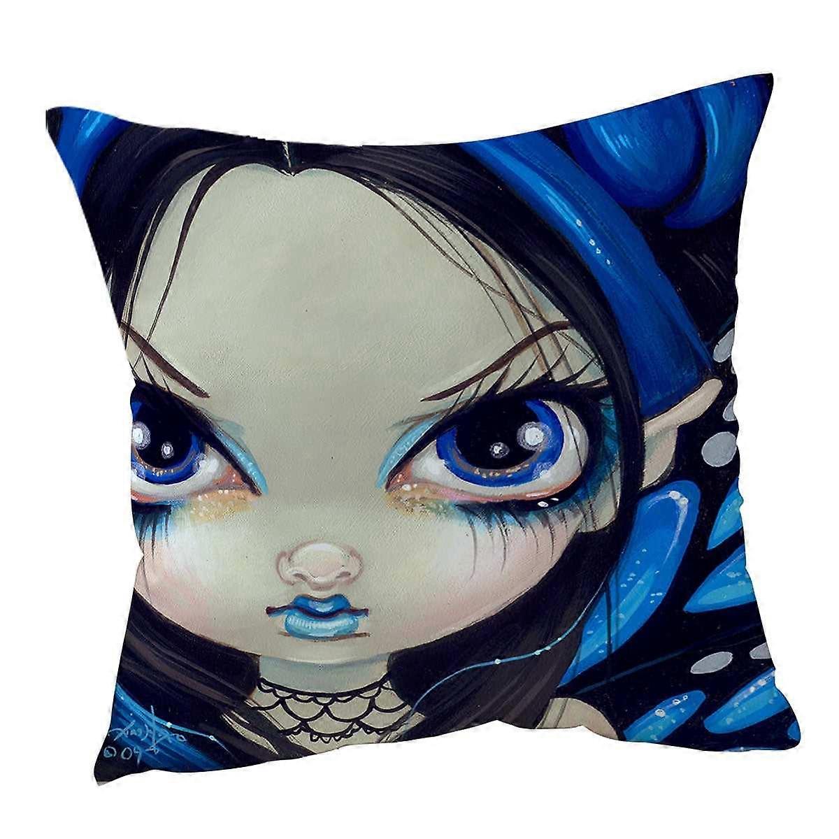 Faces of Faery #12 Blue Goth Girl Cushion Cover