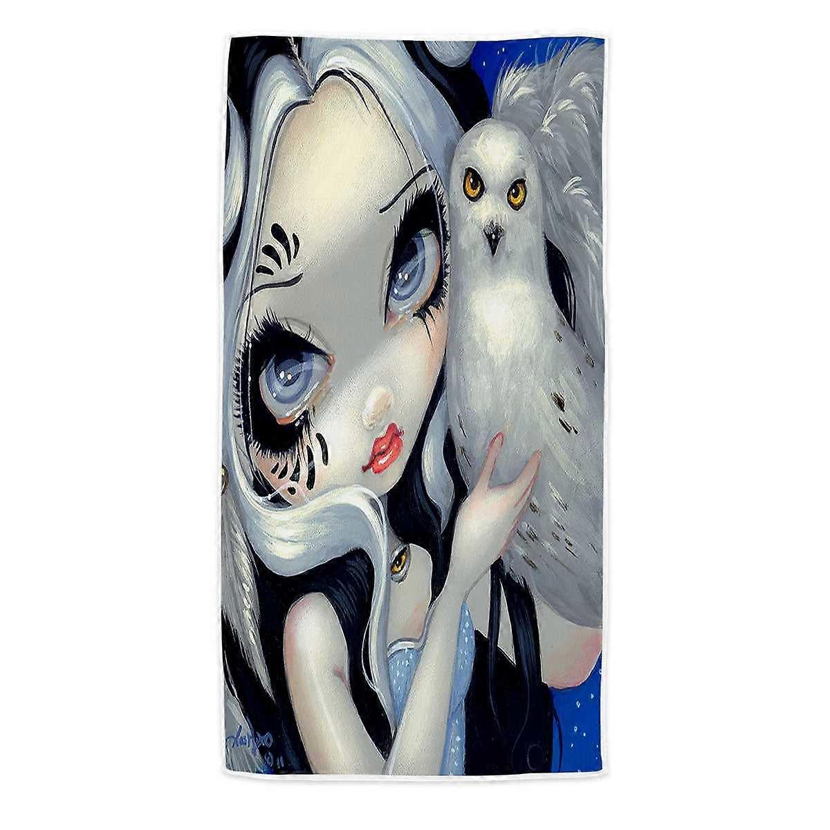 Faces of Faery #149 Goth Girl with Her White Owl Microfiber Beach Towel