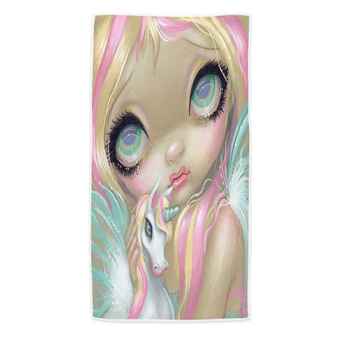 Faces of Faery #178 Big Eyed Pinkish Girl Unicorn Microfiber Beach Towel