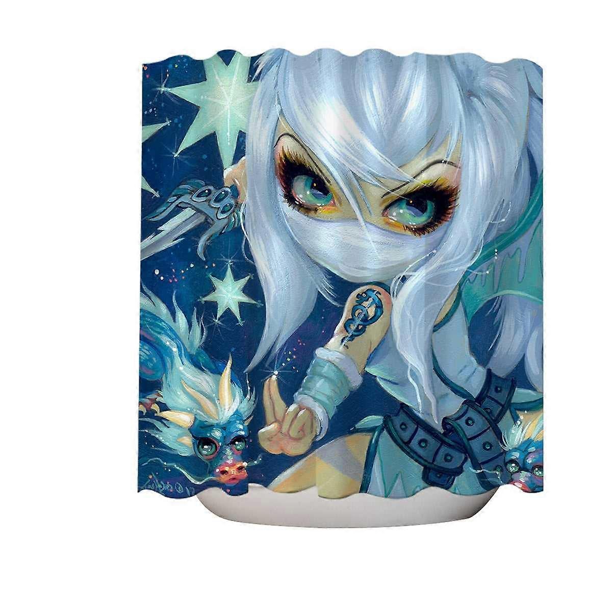 Faces of Faery #187 Ninja Girl and Star Dragon Shower Curtain