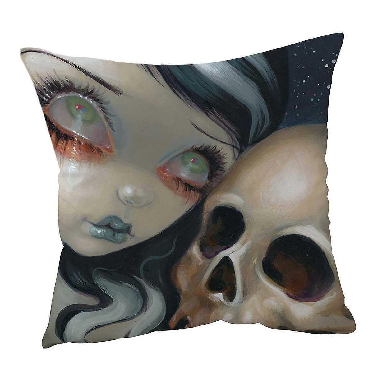Faces of Faery #196 Scary Skull and Gothic Girl Cushion Cover