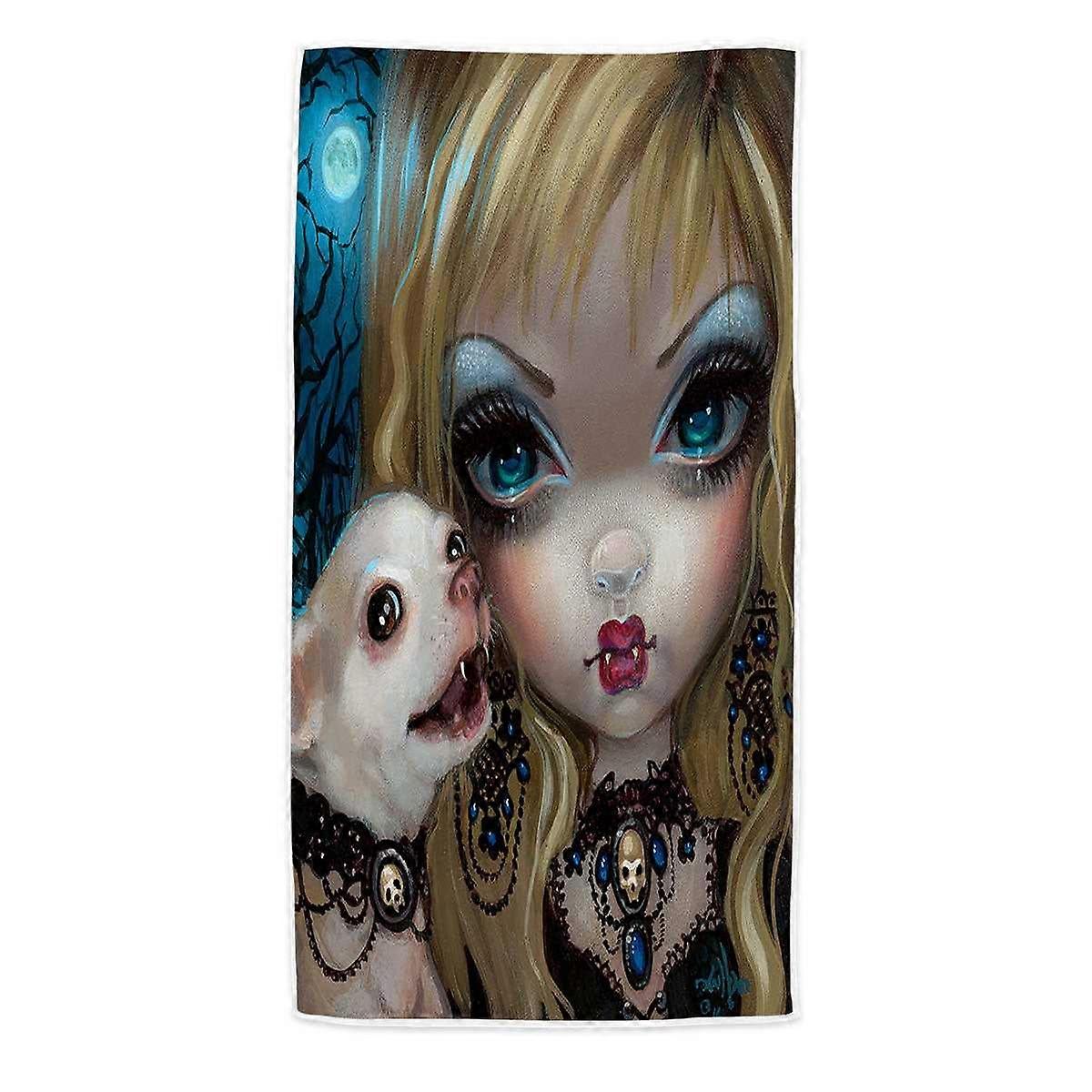 Faces of Faery #235 Gothic Vampire Girl and Her Dog Microfiber Beach Towel