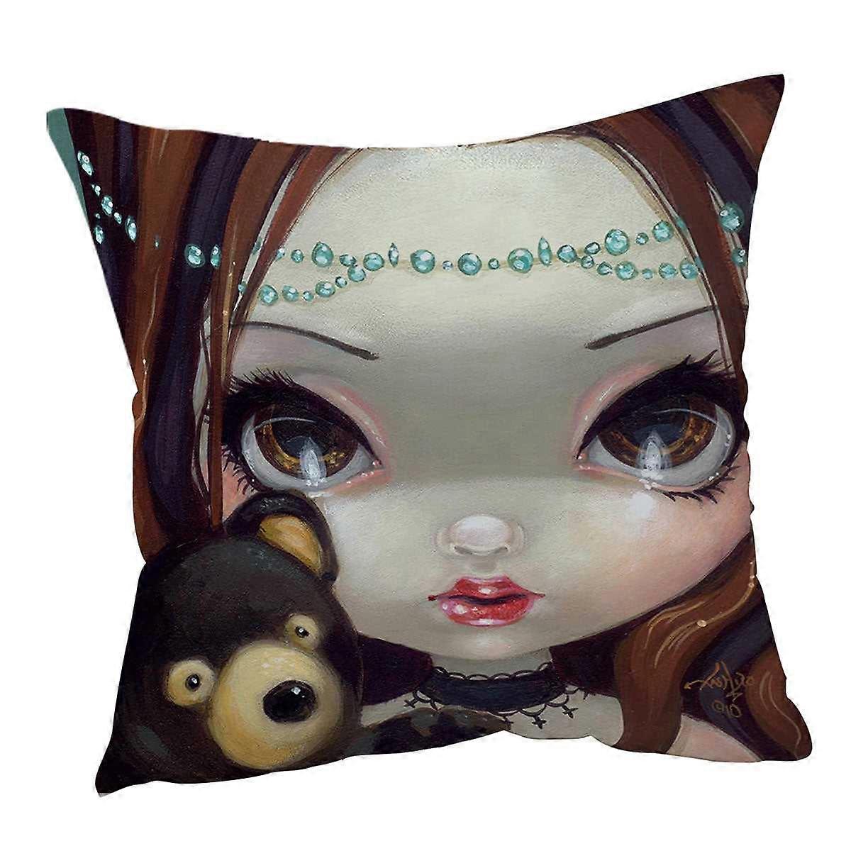 Faces of Faery #69 Princess Girl with Teddy Bear Cushion Cover