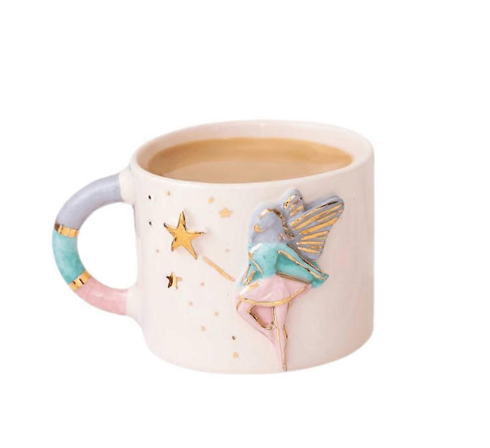 Fairy Magic Mug With Hand-painted Fairy & Star Design – Enchanting Ceramic Mug With Gold Accents