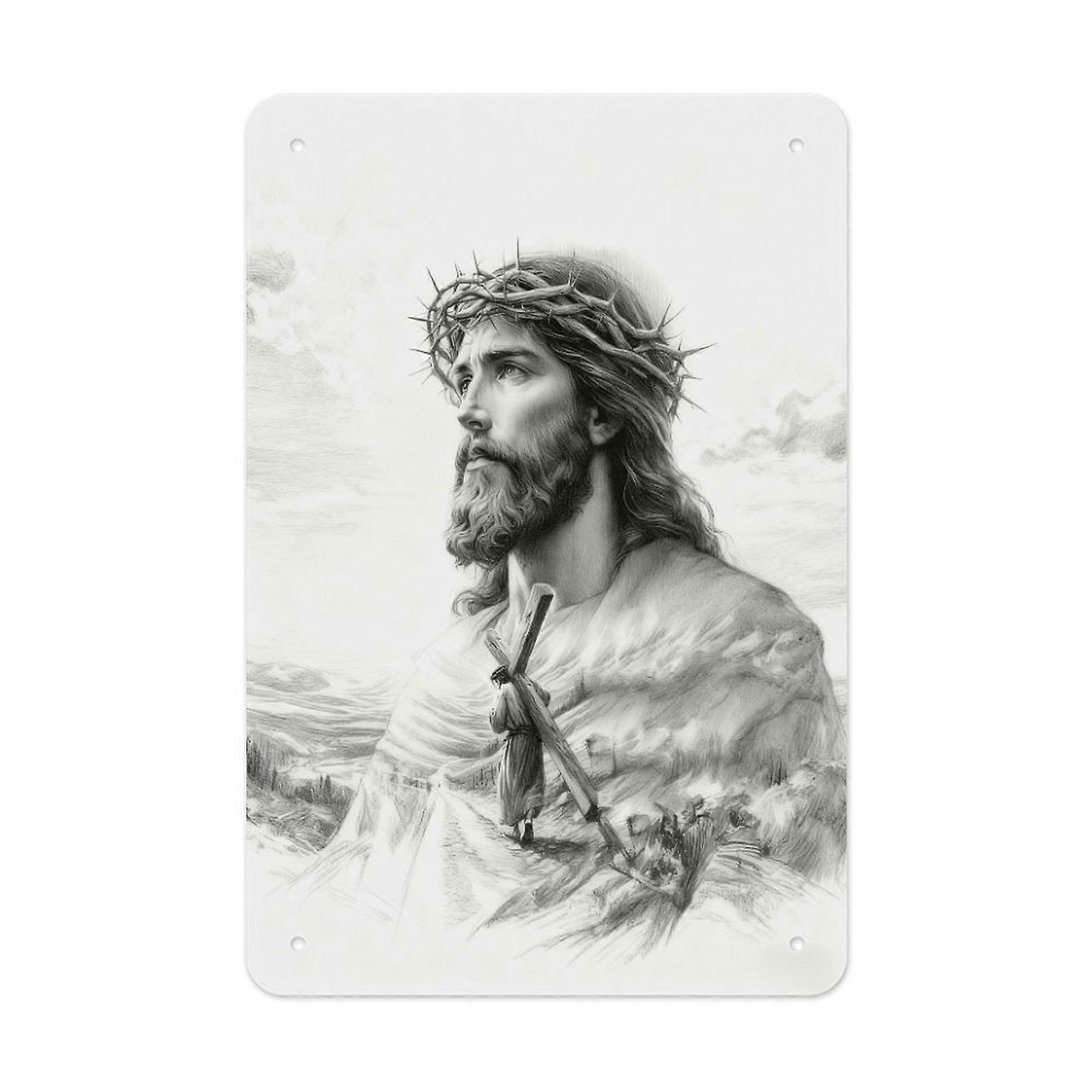 Faith Inspired Sketch Portrait Metal Tin Sign Spiritual Wall Decor Minimalist Home Decoration Gift