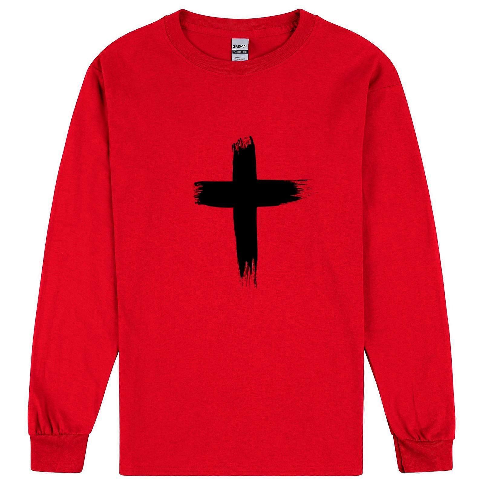 Faith Jesus Cross Christian Religion Mens Long Sleeve T-shirt Tee Top Red