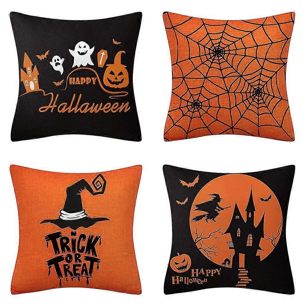 Family cartoon Halloween decorations Pumpkin bat ghost pillowcase scary Halloween party supplies accessories Haloween decorations (4 pieces)