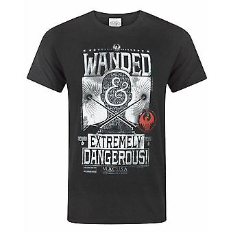 Fantastic Beasts And Where To Find Them Mens Short Sleeved T-Shirt Black Wanded And Extremely Dangerous Graphic Print