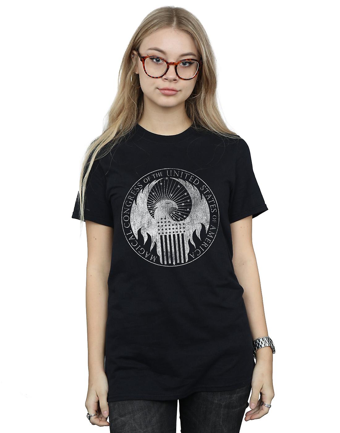 Fantastic Beasts Women's Distressed Magical Congress Boyfriend Fit T-Shirt